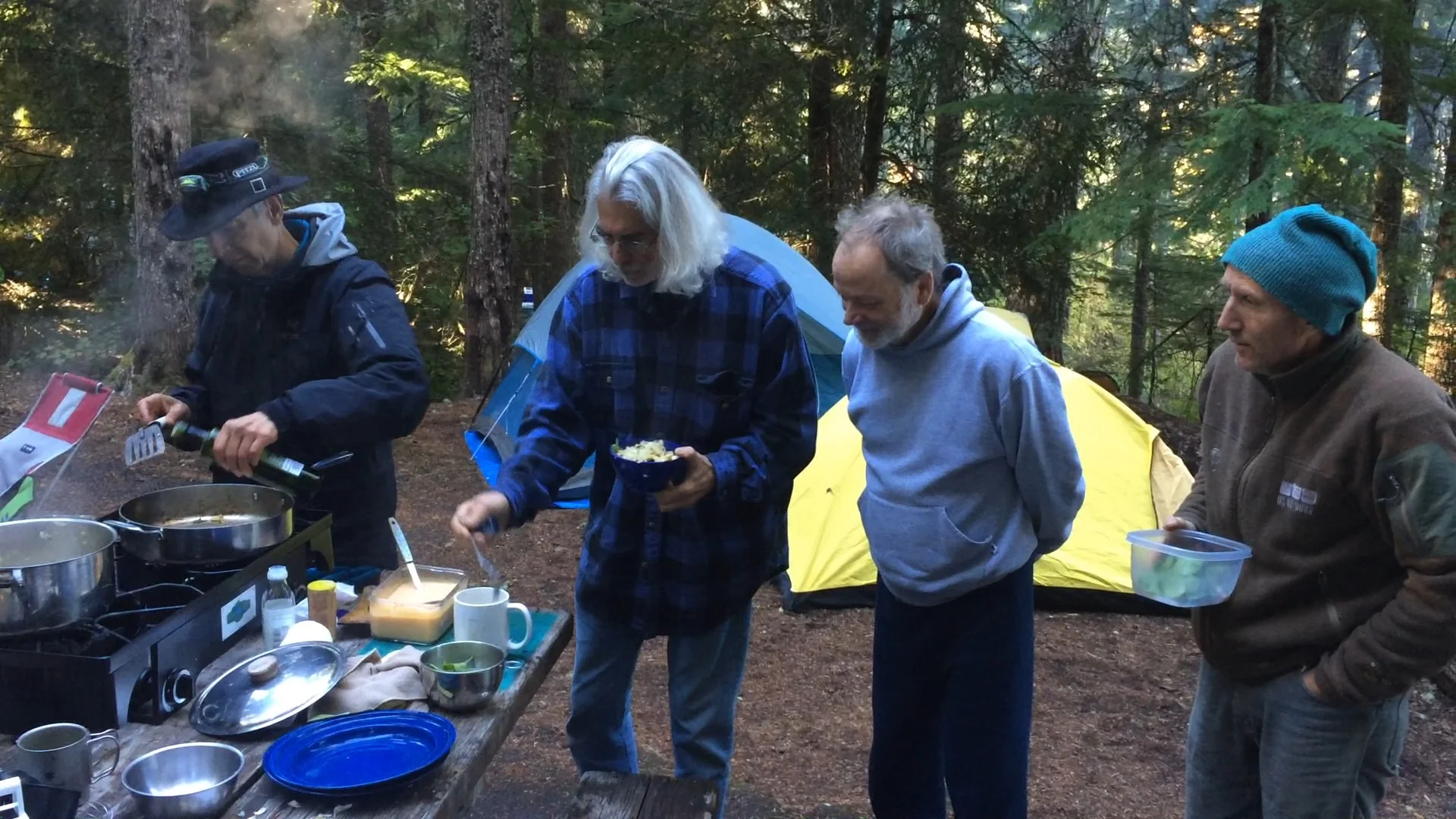 Shelter included an assortment of tents as well as one hammock. Most of us being over 60, thickness of sleeping pads were a priority. Much our time focused around preparing and consuming meals. Evenings involved slow conversation around the fire, our vulnerability reflected around topics of broken relationships, health issues, and gratitude for the privilege that we could be here enjoying the weekend.
